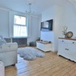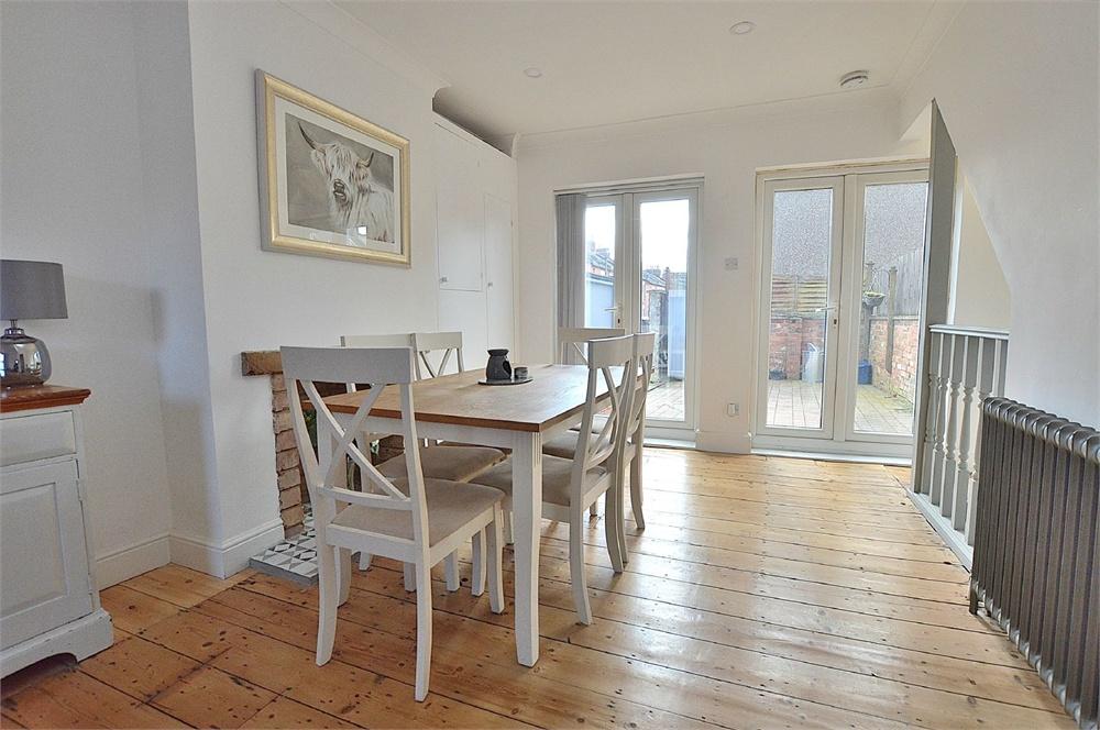 22' 5" x 10' 4" (6.83m x 3.15m) UPVC double glazed window to front. Two upvc double glazed French doors to rear. Two radiators. Exposed wooden floorboards. Fitted chimney recess cupboard. Stairs down to the kitchen.