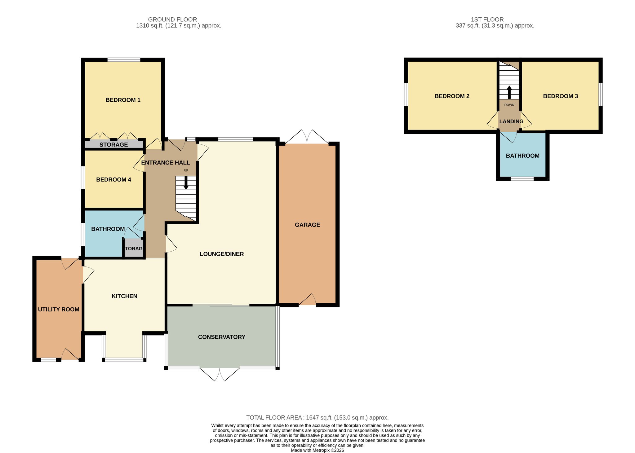 Situated in the highly desirable village of Great Houghton, this spacious and versatile four-bedroom detached home offers generous accommodation extending to approximately 1,647 sq.ft. and enjoys a large private rear garden with open outlook beyond. The property is offered to the market with no onward chain. The accommodation is well arranged and ideal for both family living and those seeking flexible space. An entrance hall provides access to the main living areas and staircase to the first floor. The heart of the home is a particularly generous lounge/dining room, offering an excellent entertaining space with views over the rear garden and access through to the conservatory, which provides an additional reception area and a pleasant spot to enjoy the garden throughout the year. The kitchen sits to the rear of the property and is complemented by a separate utility room, providing practical day-to-day functionality and additional storage. Unusually for a property of this style, the ground floor offers two bedrooms, including a spacious principal bedroom, along with a ground floor bathroom, making the home well suited for multi-generational living or those seeking single-level accommodation. To the first floor are two further double bedrooms together with an additional bathroom, providing flexible accommodation for family or guests. Externally, the property enjoys a good-sized rear garden, mainly laid to lawn with mature planting and a pleasant outlook, creating a peaceful setting for outdoor enjoyment. To the side of the property is a garage, providing further storage or parking.