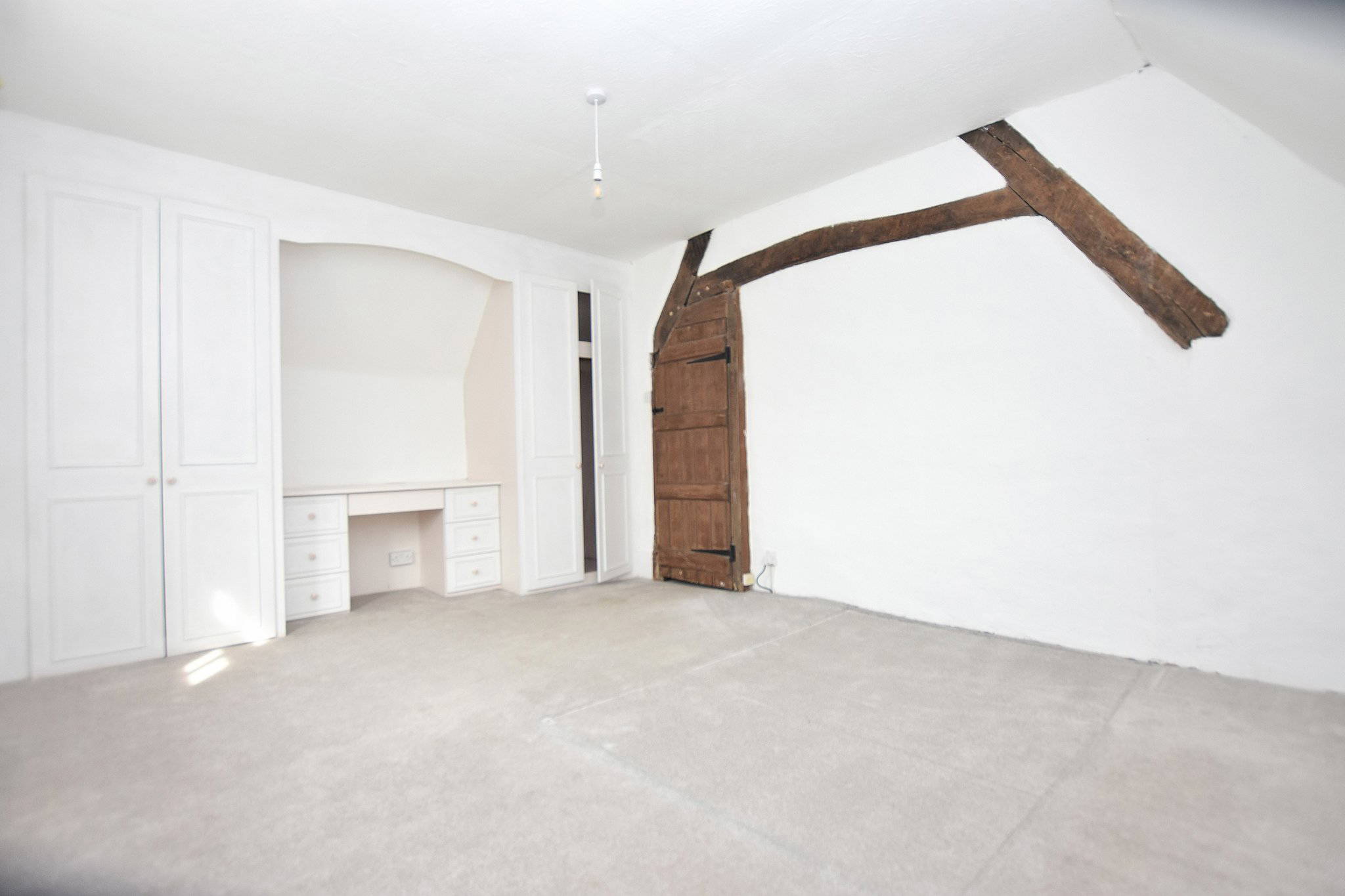 16' 3" x 12' 0" (4.95m x 3.66m) A spacious principal bedroom with a window to the side aspect. The room benefits from built-in wardrobes and an integrated dressing area with desk space. Character features include exposed beams and a traditional timber door.