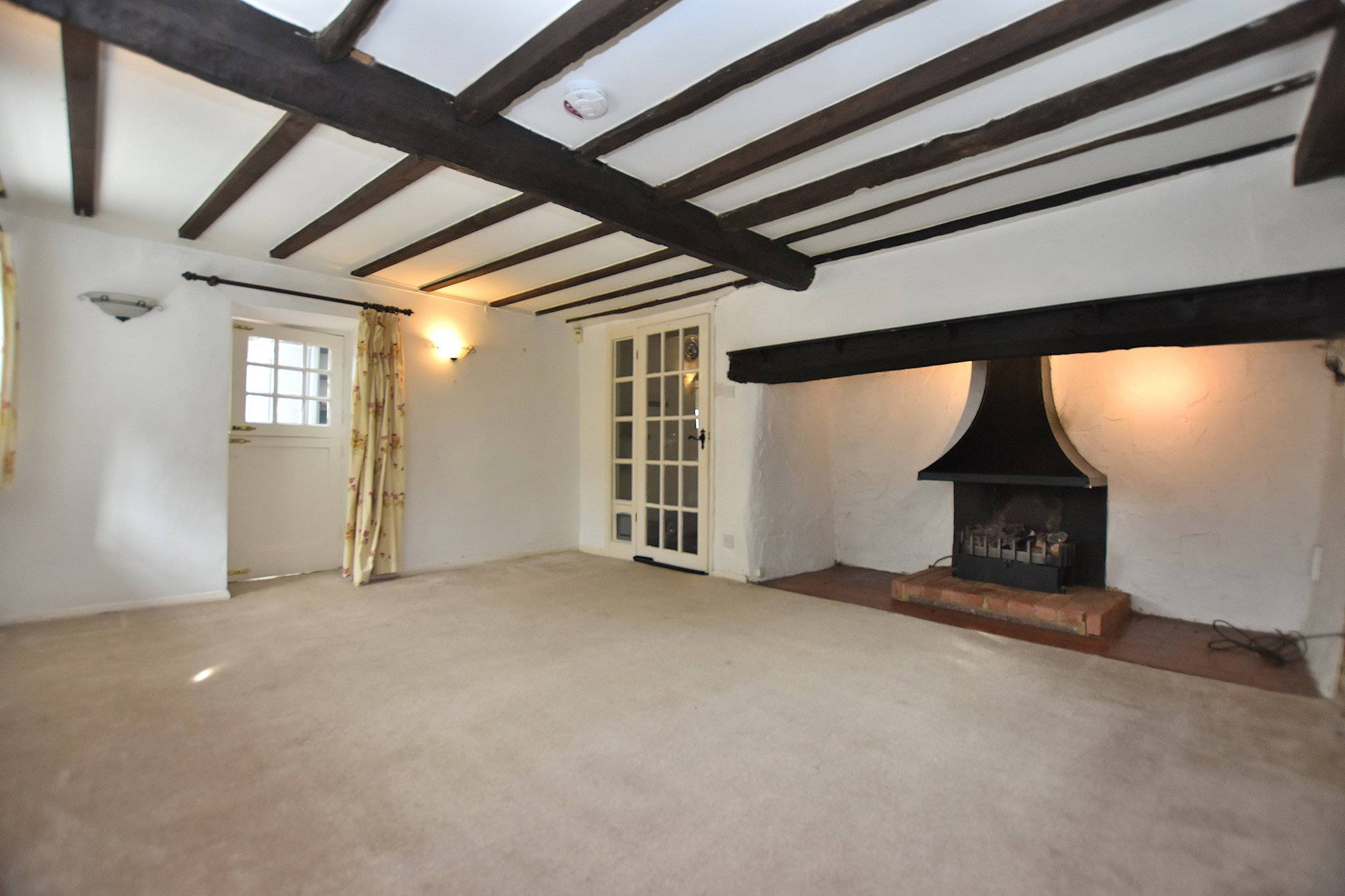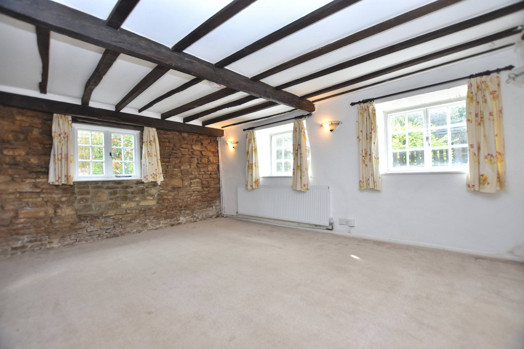 15' 5" x 15' 1" (4.70m x 4.60m) A superb main reception room featuring exposed beams, stonework and an original fireplace, offering excellent proportions and natural light with dual aspect windows.