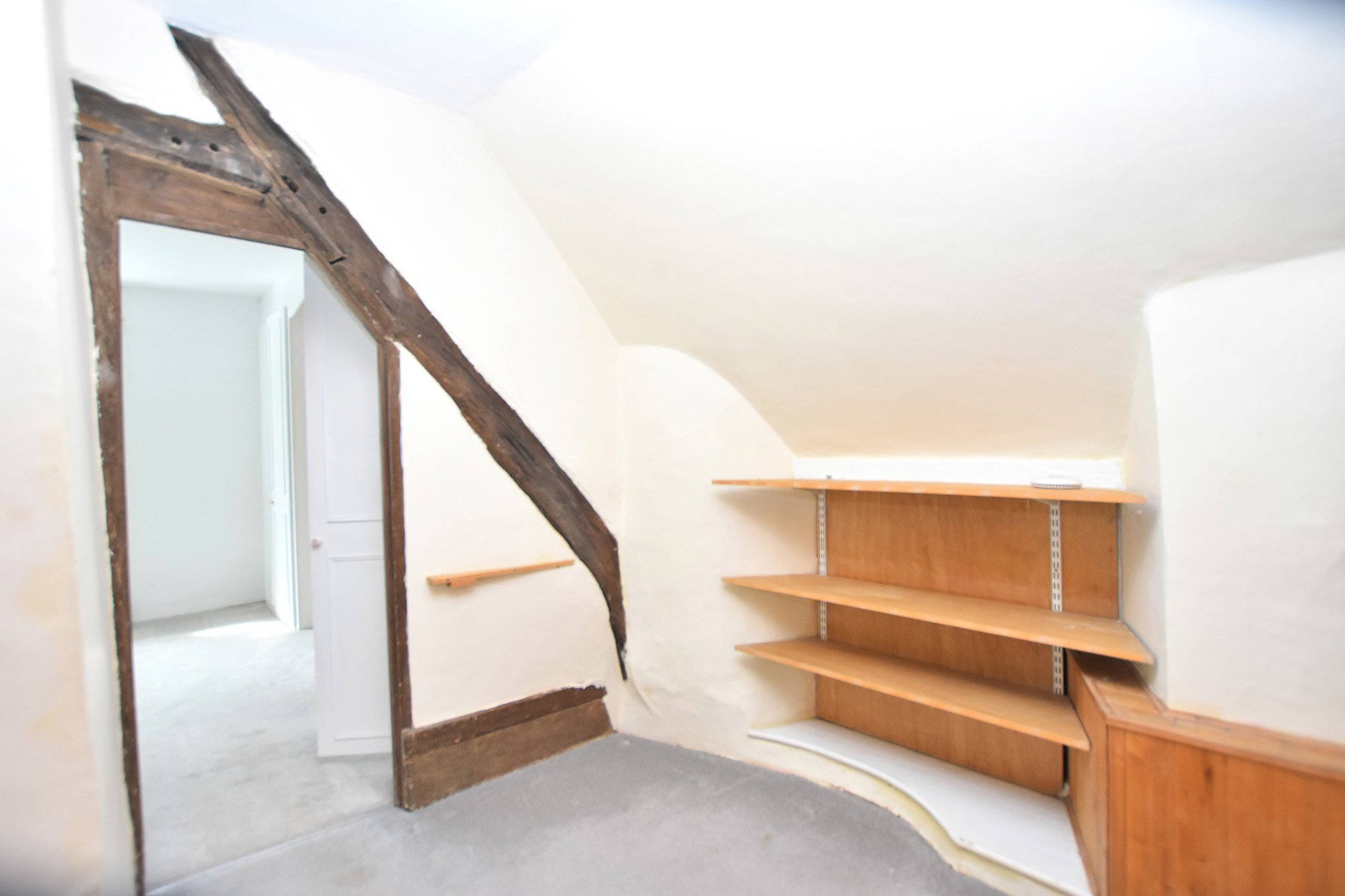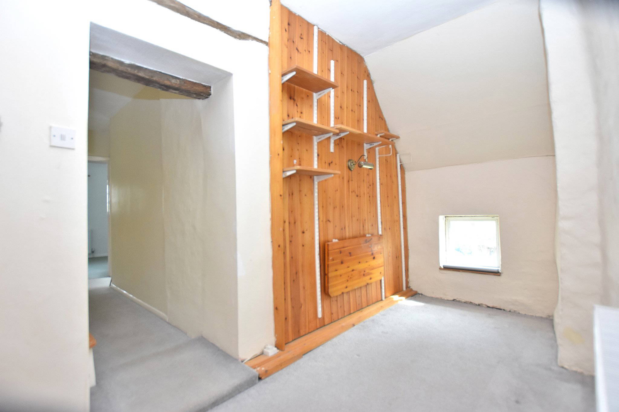 A particularly characterful landing space incorporating a study area and additional storage. With exposed beams and an irregular layout, this area provides an ideal work-from-home space or reading nook, adding to the property’s individuality.