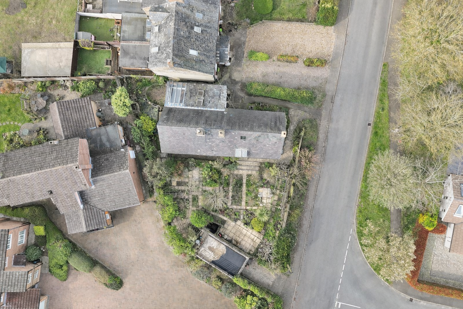 The property enjoys mature landscaped gardens to the side and rear, offering a private and well-established outdoor space with a variety of planting and areas to enjoy including a pond and lots of fruit and vegetables growing.