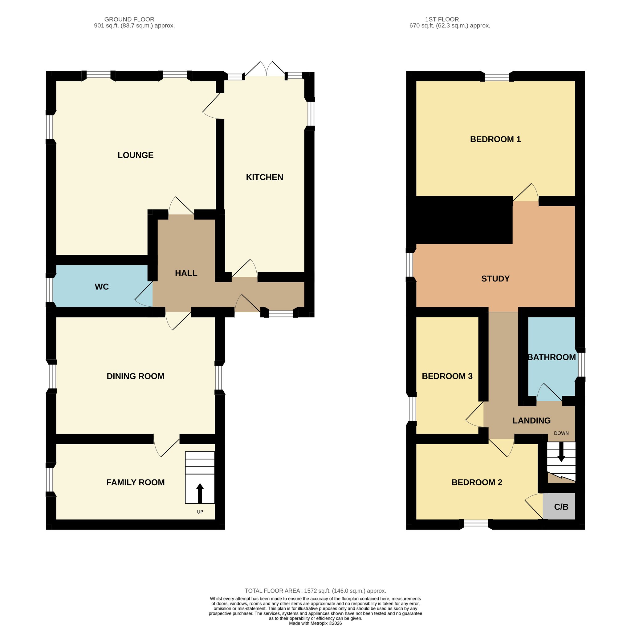 - Three bedrooms plus study area
