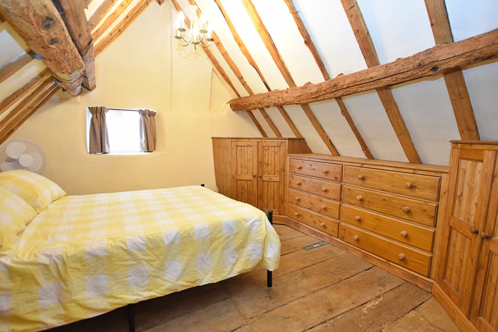 BEDROOM ONE 10' 7" x 13' 7" (3.23m x 4.14m) Stairs lead directly into bedroom. Window to rear aspect. Radiator. Built in drawers and cupboards. Door onto: