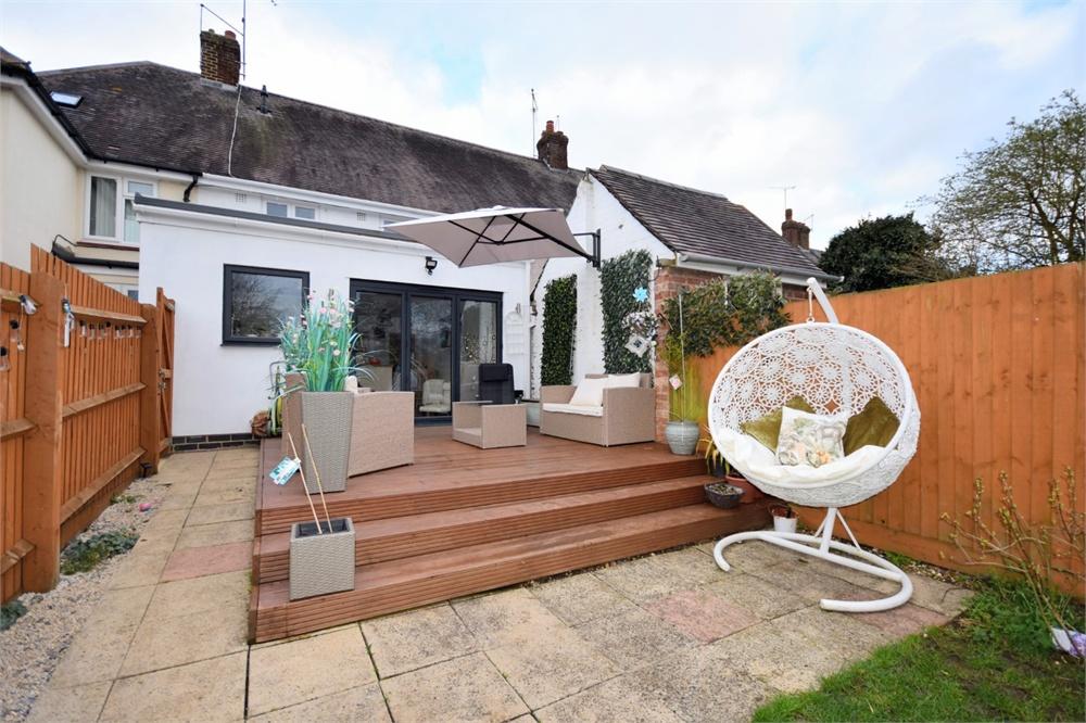 A beautifully landscaped and private rear garden. Large decking area, patio with seating, bar, large lawn areas, all enclosed via wooden panelled fencing.