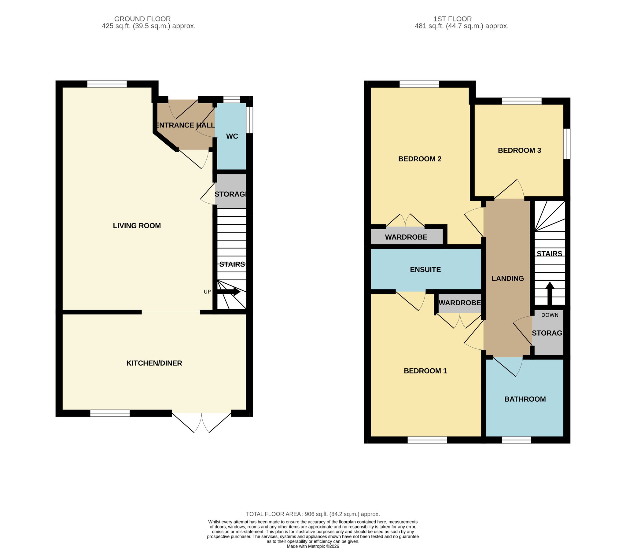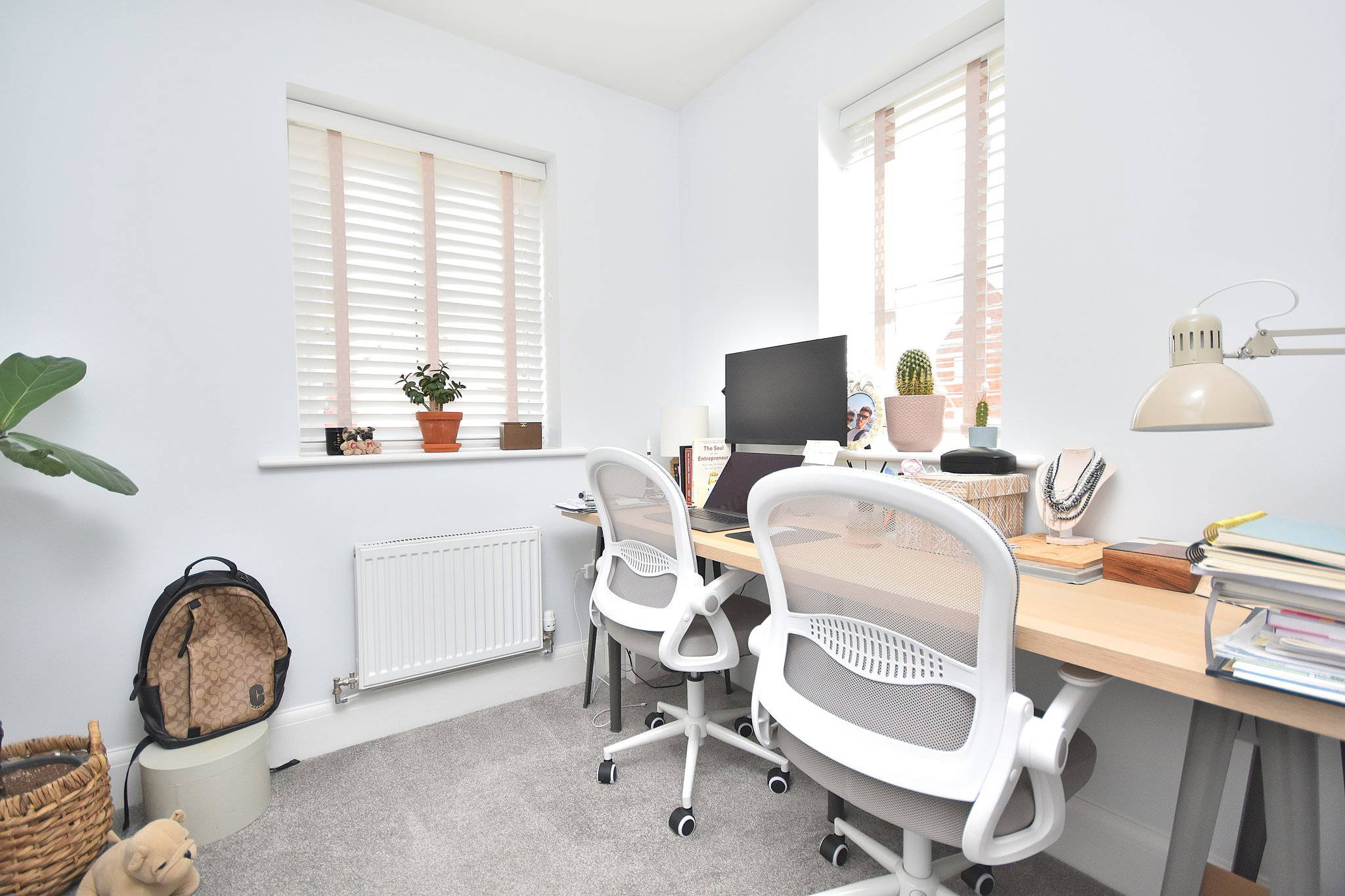 To the first floor, the property offers three well-proportioned bedrooms, two of which benefit from built-in storage. The principal bedroom further enjoys the added luxury of an ensuite shower room, while a modern family bathroom serves the remaining bedrooms.