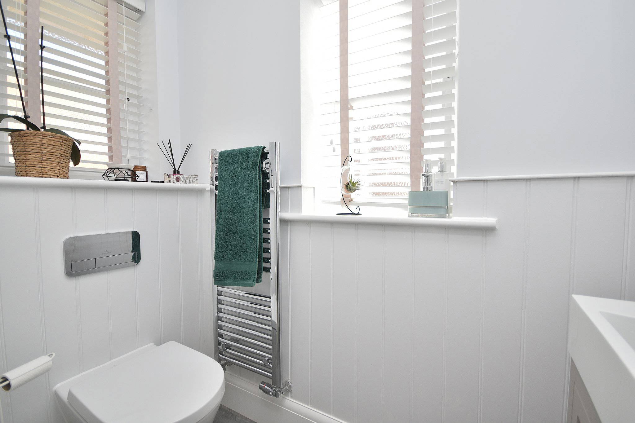 Comprising of; W/C. Hand Wash basin with mixer tap over. Heated towel rail. UPVC double glazed windows to the front and side aspect.