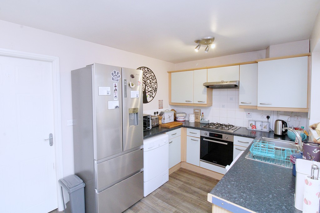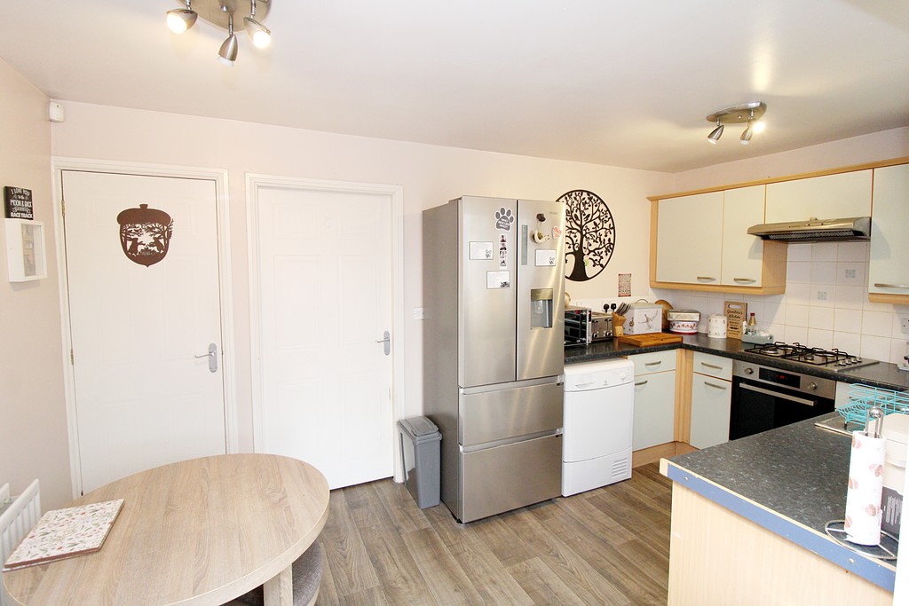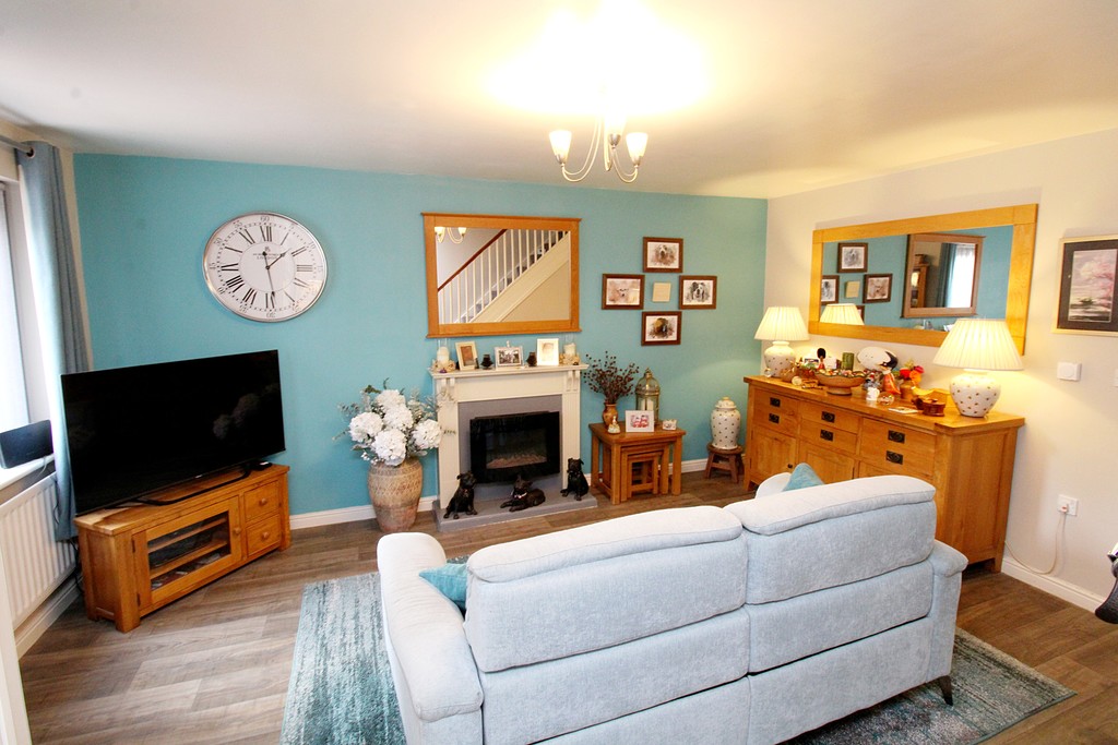 Occupying a generous plot and set back on a private strip of road, the property offers well-maintained and spacious accommodation ideally suited to modern family living. The internal layout comprises a welcoming entrance hall with a convenient ground floor guest WC, a living room featuring a contemporary fireplace, a well-appointed kitchen dining room providing an excellent space for family life and entertaining, and a bright conservatory overlooking the rear garden. To the first floor are three well-proportioned bedrooms, all served by a modern family bathroom.