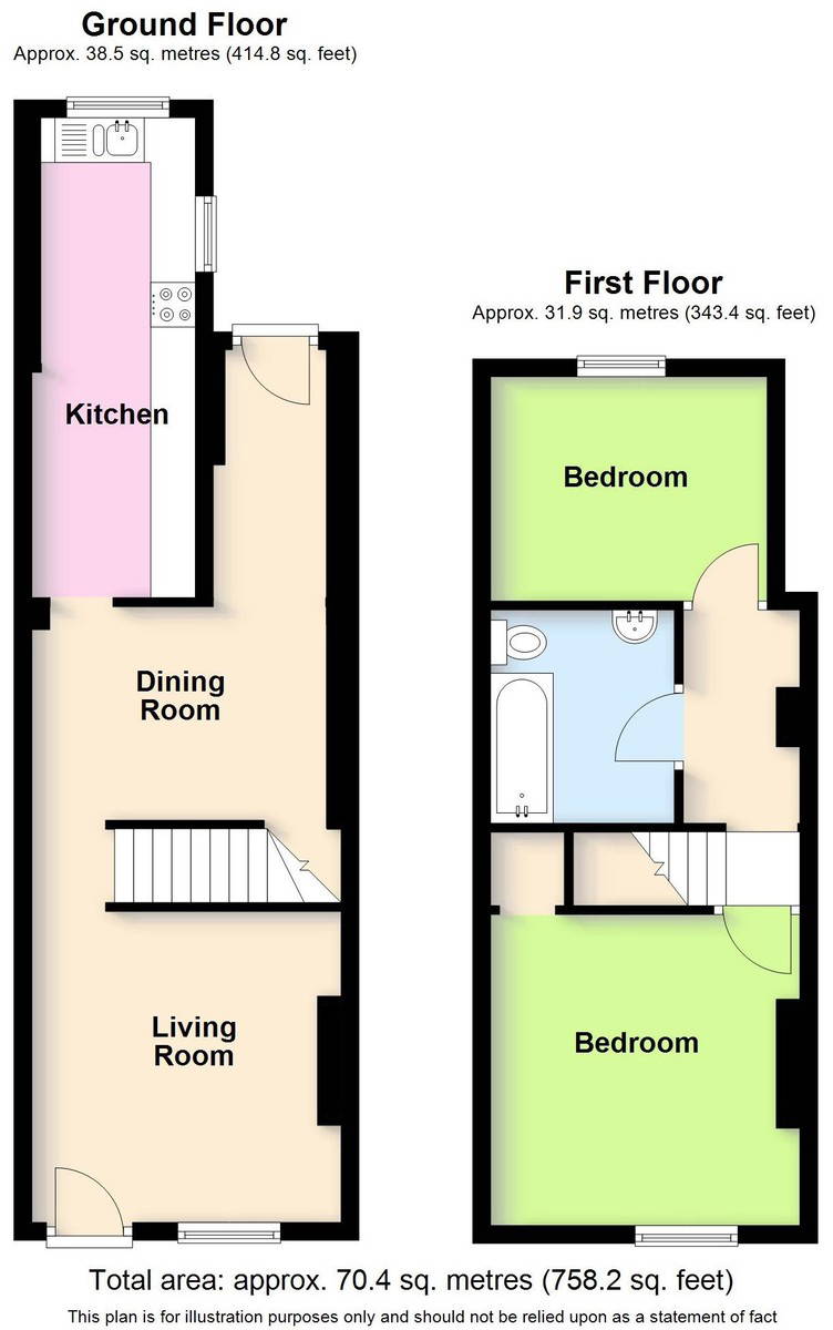 The accommodation briefly comprises an entrance hall, a spacious living and dining room, a newly fitted modern kitchen, and a newly installed contemporary bathroom. To the first floor are two well-proportioned bedrooms, all finished to a high standard. Externally, the property benefits from a decked rear garden, ideal for outdoor dining and entertaining, as well as a garage providing additional storage.