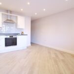 OPEN PLAN LIVING KITCHEN 12' 6" x 12' 4" (3.81m x 3.76m) Enter via a composite panel effect door with obscure double glazed insert. uPVC double glazed window to the front aspect. Wood effect flooring. A range of eye and base level units surmounted by contrasting worktops. Inset stainless steel sink and drainer with mixer tap over. Tiling to splashback areas. Built-in stainless steel single electric oven, black ceramic hob and chimney extractor hood. Space for a fridge freezer. Recessed ceiling spotlights. Cupboard housing the electric consumer unit. Further cupboard housing a combination central heating boiler. Opening to: